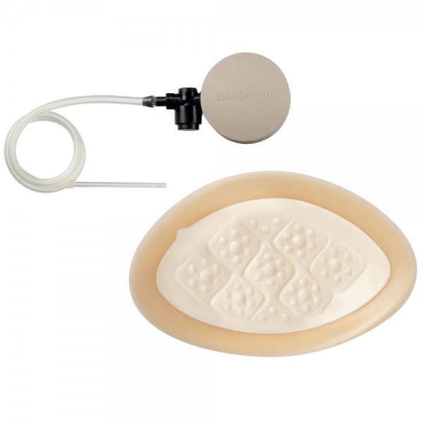 Bei der Amoena Balance Adapt Air Spezial Varia handelt es sich um eine ovale Schale zum Ausgleich mit einem eingebauten Luftkissen auf der Rückseite. Damit ist eine individuell Anpassung an Unebenheiten im Gewebe möglich. Einstellen lässt sich dieses mit einem beigefügten Pumpball, damit Sie sich nach einer Brust-OP schnell wieder wohl fühlen.Integrierte Luftkammertechnologie ermöglicht eine individuelle AnpassungBequem an jede Brustwand anpassbar für eine enganliegende Passform und perfekten HautkontaktTemperaturausgleichende Comfort+ Technologie bietet ganztägigen TragekomfortStrukturierte Rückseite für Belüftung und FlexibilitätHochwertiges InTouch-Silikon mit einer glatten und weichen Folie sorgt für ein natürliches Aussehen und angenehmes TragegefühlSymmetrische Form, die fehlendes Volumen der Brust ausgleichtBesonders geeignet für Frauen mit unebenem Narbengewebe, Gewichtsschwankungen, oder Schwellungen durch LymphödemOvale FormMaterial:Polyurethan-Film, leichtgewichtiges Silikon, Silikon, Phase-Change-MaterialGröße (symmetrisch):Unterbrustumfang undCup-Größe (vordere Mitte des BHs bis Seitennaht):Cup der operierten Seite vom Cup der nicht operierten Seite abziehenunter 1 cm: OVAL Spezial Varia SchaleS-XL, siehe Tabelle!Lierferumfang:1 Stück Amoena Balance Adapt Air Spezial Varia Ausgleichsepithese in gewählter Größe