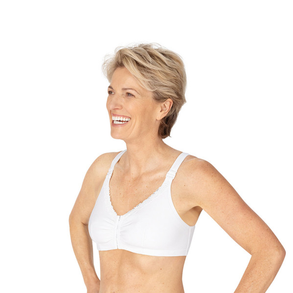 Nachdem Sie keinen Post-OP Kompressions-BH mehr tragen müssen, können Sie den Amoena Hannah BH zur Erstversorgung nutzen.Ultraweicher Stoff bietet eine eng anliegende und nicht einengende PassformBeidseitige Baumwolltaschen und glatte Seitennähte innen für besonders empfindliche HautPostoperativer BH mit Vorderverschluss für einfaches Öffnen und Schließen während der Behandlung Ohne BügelMaterial:82% Baumwolle18% ElasthanFarbe:weißGröße:Unterbrustumfang: 60 65 – 100 105Cup-Größe: A B – C DLierferumfang:1 Stück Amoena Hannah Erstversorgungs-BH in gewählter Größe