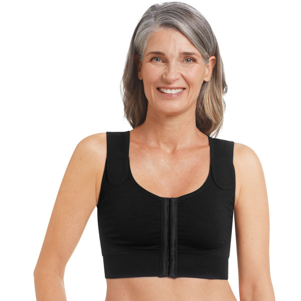 Der Kompressions-BH Sina ist nahtlos und direkt nach einer Operation geeignet. Er ist besonders weich und bequem und hat einen Vorderverschluss. Er wird ohne Kompressionsgürtel geliefert. Dieser kann bei Bedarf dazu bestellt werden, um eine optimale Kompression zu ermöglichen.Verstellbare, breite, verstärkte Träger mit Klettverschlüssen für eine einfache Anpassung und TragekomfortEingearbeitete nahtlose Taschen um eine Erstprothese sicher am Platz zu haltenPräsise Passform dank nathloser Rundstricktechnologie und visueller GrößeneinteilungHaken- und Ösenverschluss an der Vorderseite für einen leichteren Zugang zum Operationsgebiet und einfaches AnziehenImmobilisierung und Stabilisierung der operierten Brust (spezielle Strickzonen im unteren Cupbereich)Vliesband auf der Rückseite ermöglicht sicheres Positionieren des Kompressionsgürtels (nicht enthalten!)Wichtiger Hinweis:Der Kompressions-BH Sina ist klinisch vorbereitet: Er wurde gewaschen und desinfiziert und wird in einem „peel“-Beutel geliefert. Das Öffnen dieses Beutels schließt einen Widerruf aus! Dies bitte beachten!Bei Fragen sprechen Sie uns gern an.Geeignet für:BrustrekonstruktionBrustverkleinerungBrustvergrößerungBruststraffungOnkoplastische BrustoperationenMastektomieDrucklevel:Mittleres Drucklevel (Kompressionszonen im unteren Cupbereich, im Seiten- und Rückenbereich und vollflächig auf der Brust)Material:98% Polyamid2% ElasthanGröße (Unterbrustweite):70 75 – 120 125Lieferumfang:1 Stück Amoena Sina Post-OP Kompressions-BH in gewählter Größe und Farbe