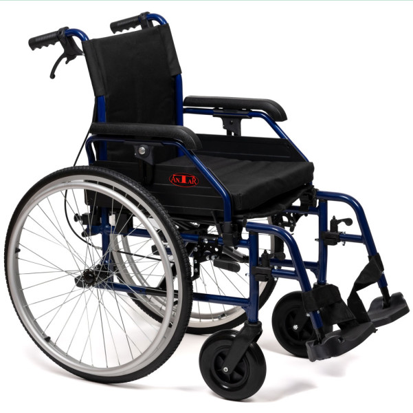 Der Antar Aluminium Rollstuhl ist leicht und faltbar. Er verfügt über verstellbare Armlehnen, einem weichen Sitzpolster und robusten Polyurethan-Rädern und eignet sich damit bestens für den Alltag und den Transport.Mit Sitzkissen (Höhe 2 cm)Technische Daten:Sitzbreite (=Größe): 43 cm, 46 cm, 49 cm, 51 cmGesamtbreite: 63 cm, 66 cm, 69 cm, 71 cmSitztiefe: 41 cmSitzhöhe: 51 cmRückenlehnenhöhe: 45 cmArmlehnenhöhe: 27 cmGesamtlänge: 103 cmGesamthöhe: 92 cmGesamtbreite gefaltet: 30 cmMax. Belastbarkeit: 130 kgGewicht: 15 kgMaterial:Rahmenmaterial: AluminiumRäder: Vollgummi (Polyurethan)Sitzkissen: Polyurethan, PolyethylenRücken: PolyurethanArmlehnen: Polyurethan (3 cm Dicke)Farbe:schwarzLieferumfang:1 Stück Antar Aluminium RollstuhlInk. Sitzkissen