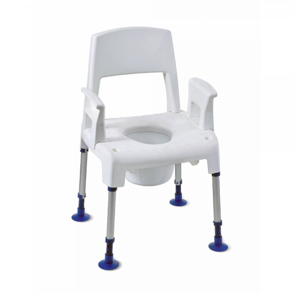 Der Pico 3 in 1 von Aquatec lässt sich sehr vielseitig gebrauchen – als Duschstuhl, Toilettenstuhl oder und als Toilettenstützgestell. absolut rostfrei durch Verwendung von Kunststoff und Aluminium auch verwendbar ohne Arm- und oder Rückenlehne strukturierte Sitzfläche für sicheren Halt Gummifüße für sicheren Stand Toilettentopf kann an vier Seiten entnommen werden einfache schnelle Montage ohne Werkzeug Maße: Sitz (-breite -tiefe) 43 cm 42 cm Sitzhöhe verstellbar 42,5 – 57,5 cm Gesamt (-breite -tiefe) 57,5 cm 52 cm Gesamthöhe 82,5 -97,5 cm Höhe bis Armlehnen 43 cm Gewicht 4,8 kg Belastbarkeit 160 kg Farbe: weiß Lieferumfang: Pico 3 in 1 2 Armlehnen, 1 Rückenlehne, 1 Toilettentopf, 1 Toilettentopfhalter