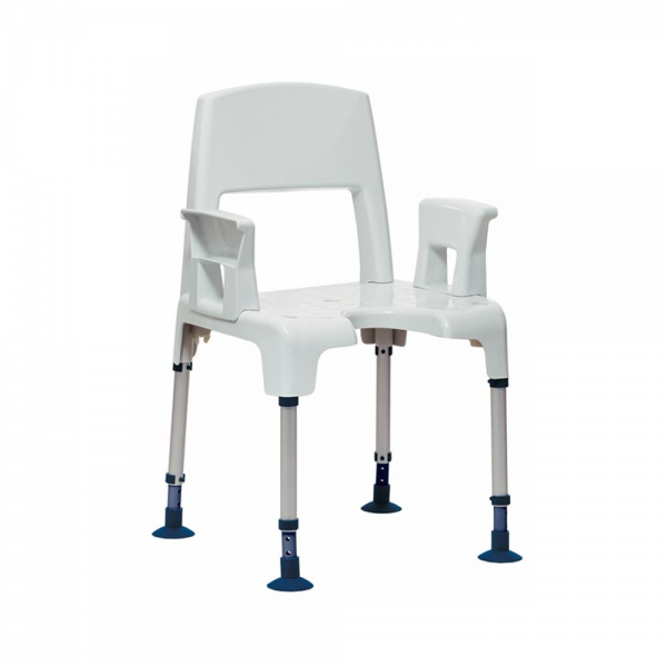 Moderner und höhenverstellbarer Duschstuhl mit großem Hygieneausschnitt, ideal für das Badezimmer. Modulares Duschstuhlsystem Belastbar bis 160 kg! Einfache und schnelle Montage – ohne Werkzeug Strukturierte Oberfläche des Sitzes sorgt für sicheren Halt Großer Hygieneausschnitt, wahlweise vorne oder hinten, durch zwei Anbringungsmöglichkeiten der Rückenlehne Höhenverstellbare Standbeine Gummi-Füße geben sicheren Stand Einfach zu reinigen, da glatte Oberfläche Rostfrei Sehr leicht Abmessungen: Sitzbreite: 430 mm Sitztiefe: 420 mm Sitzhöhe: 425-575 mm Gesamtbreite: 575 mm Gesamttiefe: 520 mm Gesamthöhe: 825-975 mm Höhe bis Armlehnen: 605-755 mm Breite zwischen den Armlehnen: 430 mm Breite Hygieneausschnitt: 180 mm Tiefe Hygieneausschnitt: 145 mm Abstufung Höhenverstellung: 25 mm Gewicht Duschhocker: 3,2 kg Belastbarkeit: 160 kg Farbe: weiß Bitte beachten Sie die Größe des Duschstuhls. Sie benötigen eine relativ große Dusche um den Pico benutzen zu können. Lieferumfang: 1 Stück Aquatec Pico Duschstuhl mit Armlehnen und Rückenlehne