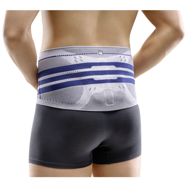 Die Bauerfeind LumboTrain® Rückenbandage kann die Lendenwirbelsäule entlasten und die stabilisierende Rumpfmuskulatur aktivieren. Damit sollen Schmerzen reduziert und eine verbesserte Haltung ermöglicht werden. Sie hat ein stark strukturiertes Hoch-Tief-Gestrick und gefiederte Ränder am Bauchverschluss, sodass sie sich anatomisch anpasst, ohne einzuschnüren.Trägt dazu bei, Rückenschmerzen zu lindern und Verspannungen zu lösenHilft durch zirkuläre Kompression beim Aufrichten und entlastet die LendenwirbelLumbales Pad wirkt unter anderem mit rückfedernden Noppen gezielt auf Schmerzpunkte einPropriozeptive Stimulation aktiviert die stabilisierende RumpfmuskulaturAnatomische Passform in gerader geschnittener Variante (Straight)Handschlaufen für leichtes AnlegenIndikationen:Degeneration WirbelsäuleLWS-Syndrom (Lendwirbelsäule)ProlapsSpondylarthroseOsteochondroselumbale DeformitätkonservativArthroseGröße (Leibumfang direkt unterhalb des Bauchnabels):70 – 80 cm = 180 – 90 cm = 290 – 100 cm = 3100 – 110 cm = 4110 – 120 cm = 5120 – 130 cm = 6130 – 145 cm = 7Farbe:titanLieferumfang:1 Stück Bauerfeind LumboTrain® Straight Rückenbandage in gewählter Größe