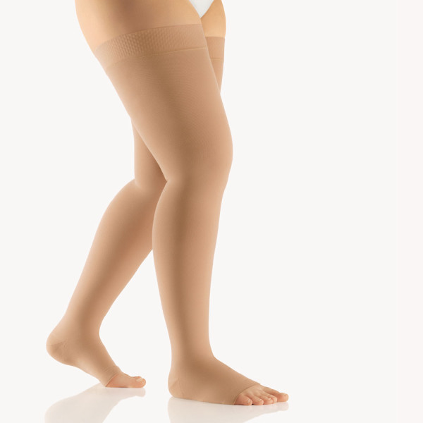 Die BORT AktiVen® Extra Kompressions Schenkelstrümpfe sind besonders strapazierfähig und für Männer und Frauen geeignet.Zuverlässiger FeuchtigkeitsausgleichNoppenhaftband 5 cmTemperaturausgleichendes GestrickOffene Spitze inkl. SchlupfhilfeEXTRA-Plus:Besonders kraftvolle KompressionswirkungKomfort-Plus:Weiche Haptik für höchsten Tragekomfort, mit modernster Funktionsfaser TENCEL® für ein frisches TragegefühlPassform-Plus:Konturierte Form für leichtes AnziehenIndikationen:VarikoseVarizen in der SchwangerschaftSklerosierungstherapie unterstützendNach venenchirurgischen EingriffenThromboembolieThrombophlebitis (superfiziell) sowie Zustand nach abgeheilter PhlebitisTiefe BeinvenenthromboseZustand nach ThromboseThromboseprophylaxe bei mobilen PatientenChronisch venöse Insuffizienz (CVI)UlkuspräventionLeitveneninsuffizienzAngiodysplasienLymphödemeLipödeme ab Stadium IIStauungszustände infolge Immobilitäten (arthrogenes Stauungssyndrom, Paresen und Teilparesen der Extremität)Zustand nach VerbrennungenNarbenbehandlungFarben:karamellschwarzLänge:Normal: 71 – 81 cmGrößen (Fesselumfang):18-20 cm = 120-22 cm = 222-24 cm = 324-26 cm = 426-28 cm = 528-30 cm = 630-32 cm = 7Lieferumfang:1 Paar BORT AktiVen® Extra CCL2 AG Schenkelstrümpfe normal offene Fußspitze mit Noppenhaftband in gewählter Größe und Farbe