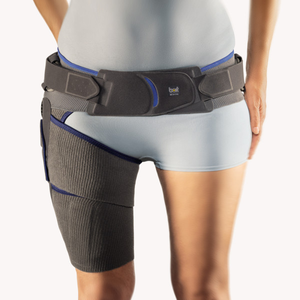 Die Bort CoxaPro Hüftorthese kann zur Funktionssicherung und oder Mobilisierung des Hüftgelenks verwendet werden.Einfache Bewegungslimitierung von Beugung und StreckungWerkzeugfreie Einstellung von Extension Flexion: 0°, 15°, 30°, 45°, 60°,75°, 90°Trochanter-Pelotte zur intermittierenden MassageGelenkschiene aus Aluminium am Hüftbereich und Oberschenkel durch Kaltverformung anpassbarDAS MED-PLUS:Gute Funktionssicherung des Hüftgelenks durch zwei breite, gegenläufige Zügel am OberschenkelLeichte und schlanke Bauweise für hohen TragekomfortHochwertiges Funktionsgestrick aus Baumwolle, besonders klettresistentFarbe:grauGröße (Umfang Beckenkamm):85 – 100 cm = S100 – 115 cm = M115 – 130 cm = L130 – 145 cm = XLbitte rechts oder links auswählenIndikationen:Alle Indikationen, bei denen eine Funktionssicherung und oder Mobilisierung des Hüftgelenks notwendig ist, wie zum Beispiel Zustand nach HüftgelenksluxationLockerung von HüftendoprothesenMittelschwere bis schwere CoxarthroseMuskuläre Dysbalancen Lenden-Becken-Hüft-Region, wie Tractus-iliotibialis-SyndromPiriformis-SyndromMaterialzusammensetzung:Baumwolle, Polyamid, Elastodien Latex, Elasthan, ViskoseLieferumfang:1 Stück BORT CoxaPro Hüftorthese in gewählter Größe und Seite