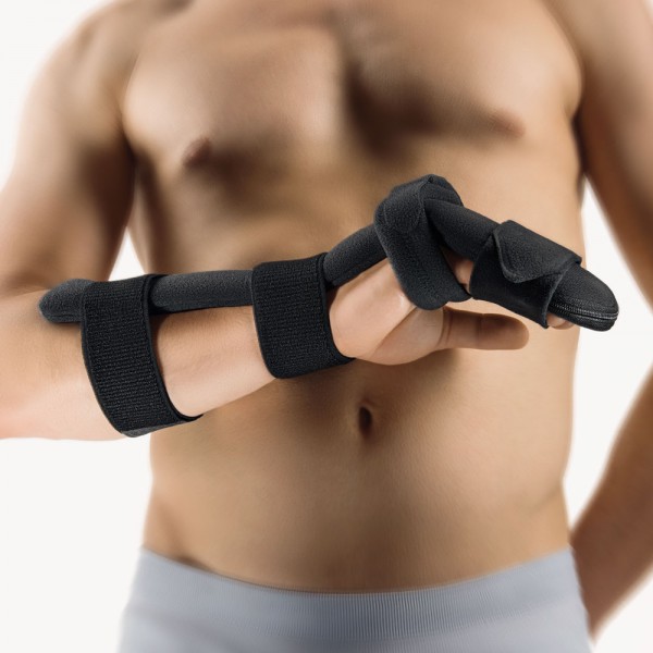 Die Dorsale Intrinsic Plus Schiene von Bort ist eine Handgelenkschiene zur Immobilisierung mit Fingerfixierung.Optimale Vorformung der Schiene in Intrinsic Plus-Stellung25° Streckung im Handgelenk 70° Beugung FingergrundgelenkeZwei elastische Klettverschlüsse im Unterarmbereich, jeweils ein unelastischer Klettverschluss im Grundgelenkbereich der Hand, sowie im Bereich der FingergliederDurchgängig, beidseitig weich gepolstert, für optimalen TragekomfortEinfache postoperative Anwendung durch anatomische VorformungFarbe:schwarzDAS MED-PLUS:Immobilisierende Anlage von dorsalPostoperative schnelle und sichere AnlageVermeidung von Kontrakturen der LangfingerFrühzeitige Mobilisierung der Langfinger durch Faustschluss möglichStreckung der Langfinger im Mittel- und Endgelenk mit einem Klettband für das Tragen in der NachtIndikationen:Präoperativ, postoperativ, posttraumatisch, z. B.:Mittelhand- und Fingergrundgliedfrakturen im Bereich der Langfinger (z. B. Boxer-Fraktur)Bandverletzungen der Langfinger im Bereich der GrundgelenkeVerletzungen und Erkrankungen, die eine Ruhigstellung der Langfinger notwendig machen (z. B. Infektionen)Größe (Länge Hand):14 – 17 cm = Größe 117 – 22 cm = Größe 2rechts und links gleichLieferumfang:1 Stück BORT Dorsale Intrinsic Plus Schiene in gewählter Größe