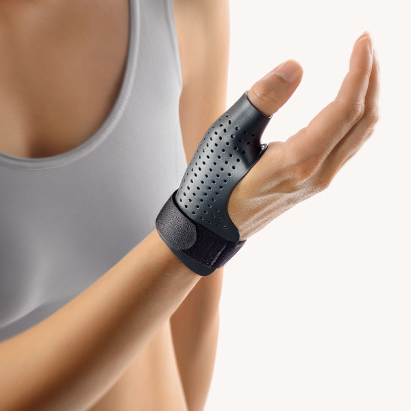 Die Bort SellaDur® Daumenorthese kann zur Ruhigstellung des Daumengrundgelenks und Daumensattelgelenks verwendet werden. Sie hat einen hochgezogenen Rand am kritischen Bereich von Daumen und Zeigefinger für extra Komfort.Extrem strapazierfähige OrtheseGroßflächige Perforation für angenehmen TragekomfortAbwaschbarInkl. elastischem UnterziehstrumpfFarbe:anthrazitIndikationen:posttraumatischpostoperativnach DistorsionKontusionRuhigstellung bei rheumatisch-entzündlichen ProzessenRhizarthroseBandläsion (Ski-Daumen)Größe (Handgelenkumfang):15 – 17 cm = Small17 – 19 cm = Medium19 – 21 cm = Largebitte rechts oder links auswählenMaterialzusammensetzung:83% Polypropylen9% Polyamid6% Polyester2% ElasthanLieferumfang:1 Stück BORT SellaDur® Daumenorthese in gewählter Größe und SeiteInkl. elastischem Unterziehstrumpf