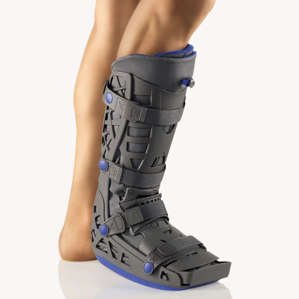 Der Bort X-Walker Achillo ist eine Unterschenkel-Fußorthese zur Immobilisierung in definierten, einstellbaren Gelenkpositionen.Lange Ausführung mit geringem EigengewichtErgonomisches Design und leichte Bedienbarkeit sowie Nachpassung des integrierten, großflächigen VakuumkissensTherapieunterstützende Laufsohle mit sehr guter AbrolleigenschaftEinstellbare Fußlänge durch justierbaren ZehenschutzbügelFünfstufiges Fersenkeil-Set zur Justierung der therapeutischen SpitzfußstellungStufenlose Weitenjustierung im Bereich der WadeIntegriertes, großflächiges Vakuum-System:Zur formschlüssigen Bettung und StabilisierungMit Granulat gefülltLässt sich mit beiliegender Vakuumpumpe an den Fuß- und Unterschenkel anpassenFarbe:grauIndikationen:AchillessehnenrupturPrä- oder postoperative posttraumatische Ruhigstellung der Unterschenkel-Fuß-RegionPostoperativ bei AchillessehnennahtGröße (Schuhgröße):35 – 40 = S40 – 45 = M45 – 50 = Lrechts oder linksLänge:Größe S: 45 cmGröße M: 46 cmGröße L: 48 cmMaterialzusammensetzung:Orthesenschale: 100% Polypropylen (PP)Vakuumkammer: 100% Polyvinylchlorid (PVC)Vakuumkammer Füllung: 100% Polystyrol (EPS)Liner (Bezug): 15% Polyester (PES), 55% Baumwolle (CO), 30% PUR-SchaumVerschlüsse: 100% Polyamid (PA)Fersenkeile: 100% Polyethylen (PE)Pflegehinweise:Orthesenschale und Fersenkeile nur per Hand waschenLinerbezug im Schonwaschgang bei 30° C (ohne Vakkuumkissen!)nicht bleichen, nicht im Wäschetrockner trocknen, nicht bügeln, nicht chemisch reinigenLieferumfang:1 Stück BORT X-Walker Achillo Unterschenkel-Fußorthese in gewählter GrößeInkl. 2 UnterziehstrümpfeInkl. Vakuumpumpe