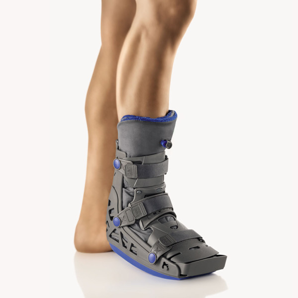 Der Bort X-Walker ist eine Fuß- und Sprunggelenkorthese zur Ruhigstellung der Unterschenkel-Fuß-Region.Kurze Ausführung mit geringem EigengewichtErgonomisches Design und leichte Bedienbarkeit sowie Nachpassung des integrierten, großflächigen VakuumkissensTherapieunterstützende Laufsohle mit sehr guter AbrolleigenschaftEinstellbare Fußlänge durch justierbaren ZehenschutzbügelStufenlose Weitenjustierung im Bereich der WadeIntegriertes, großflächiges Vakuum-System:Zur formschlüssigen Bettung und StabilisierungMit Granulat gefülltLässt sich mit beiliegender Vakuumpumpe an den Fuß- und Unterschenkel anpassenFarbe:grauIndikationen:Prä- oder postoperative posttraumatische Ruhigstellung der Vorfuß- und MittelfußregionMetatarsalfrakturWeichteilverletzungenDistorsionenGröße (Schuhgröße):35 – 40 = S40 – 45 = M45 – 50 = Lrechts und links gleichLänge (kurz):Größe S: 31 cmGröße M: 33 cmGröße L: 35 cmMaterialzusammensetzung:Orthesenschale: 100% Polypropylen (PP)Vakuumkammer: 100% Polyvinylchlorid (PVC)Vakuumkammer Füllung: 100% Polystyrol (EPS)Liner (Bezug): 15% Polyester (PES), 55% Baumwolle (CO), 30% PUR-SchaumVerschlüsse: 100% Polyamid (PA)Pflegehinweise:Orthesenschale nur per Hand waschenLinerbezug im Schonwaschgang bei 30° C (ohne Vakkuumkissen!)nicht bleichen, nicht im Wäschetrockner trocknen, nicht bügeln, nicht chemisch reinigenLieferumfang:1 Stück BORT X-Walker kurz Fuß- und Sprunggelenkorthese in gewählter GrößeInkl. 2 UnterziehstrümpfeInkl. Vakuumpumpe