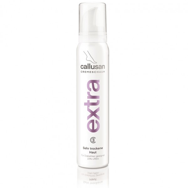 Callusan Cremeschaum – Die besondere Hautpflege für gesunde Füße Für sehr trockene Haut. Besonders geeignet auch für Diabetiker (10 % Urea). Inhalt: 125 ml Callusan ist eine Serie von Hautpflegeprodukten, die speziell für die Fußpflege entwickelt wurde. Die Cremeschäume verzichten bewusst auf eine fettreiche Salbengrundlage. Die Poren bleiben frei, die Haut kann ungehindert atmen. Die Cremeschäume ziehen rasch in die Haut ein und hinterlassen keinen unangenehmen Fettfilm. Die Hautverträglichkeit ist dermatologisch getestet. Inhaltsstoffe: Aqua, Urea, Isobutane, Glycerin, C12-15 Alkyl Benzoate, C12-15 Alkyl Benzoate, C12-13 Alkyl Lactate, Cetearyl Alcohol, Persea Gratissima Oil, Sodium Lauroyl Sacosinate, Sorbitol, Cetearyl Glucoside, Hexyldecanol, Hexyldecyl Laurate, Sodium Acryloyldimethyl Taurate Copolymer, Butyrospermum Parkii Butter, Lactic Acid, Sodium Lactate, Phenoxyethanol, Propane, Butane, Hydroxyethyl Acrylate, Squalane, Polysorbate60, Ethylhexylglycerin, Stearic Acid Lieferumfang: 1×125 ml