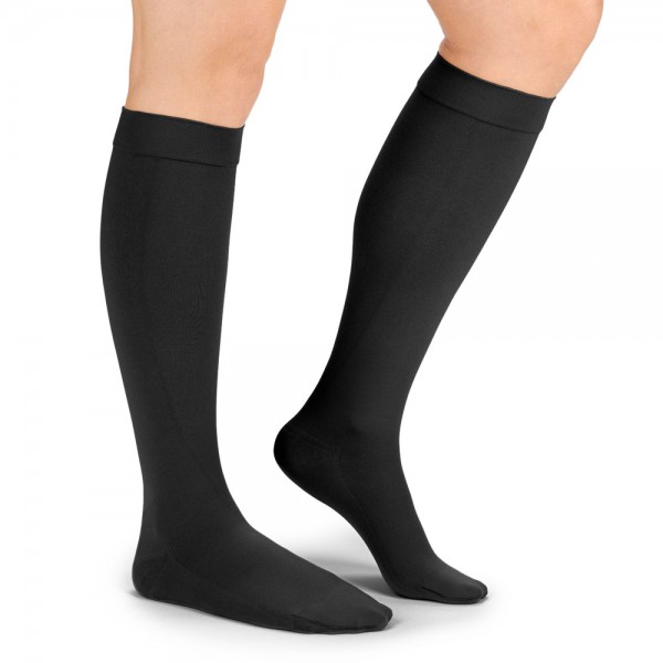 Die Compressana Leganza Kompressionsstrümpfe sind besonders elegant und haben einen hohen Tragekomfort. Das Maschenbild ist gleichförmig und fein, sodass sich die Kniestrümpfe sehr weich auf der Haut anfühlen und eine glatte Oberfläche haben.Dezente TransparenzAnatomischer Schnitt und vorteilhafte Betonung der BeinformHervorragendes DehnungsverhaltenWeicher, dehnfähiger und einschnürungsfreier KniebereichNahtfreier, stricktechnisch umgehängter Rippbund als SoftrandKomplett verstärkte Sohlenpartie ohne Einschränkung der LängselastizitätGroßzügige, luftige, nicht einengende Fußspitze mit weicher DehnungKlima-, temperatur- und feuchtigkeitsregulierende EigenschaftenPflegeleicht, waschmaschinen- und trocknergeeignetGeschlossene FußspitzeFarben:perlegraphitschwarzsilksandelchocoFußlänge:ca. 22,5 – 27,5 cmbis Schuhgröße 44Beinlänge:40 – 46 cmGröße (Fesselumfang):18 – 20 cm = I20 – 22 cm = II22 – 24,5 cm = III24,5 – 27 cm = IV27 – 30 cm = V30 – 33 cm = VIMaterial:65% Polyamid35% ElasthanLieferumfang:1 Paar Compressana Leganza Kompressionsstrümpfe AD CCL1 in gewählter Größe und Farbe