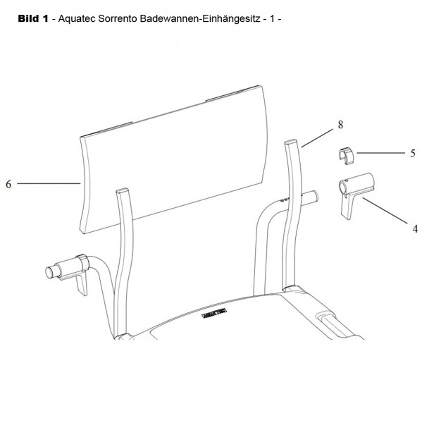 Hier finden Sie passende Aquatec Sorrento Ersatzteile für: Aquatec Sorrento Badewannen-Einhängesitz Aquatec Sorrento Duschstuhl und Duschhocker Aquatec Sorrento Badewannen-Drehsitz Es gibt Ersatzteile, die gleich für alle sind, aber auch welche, die verschieden sind. Bitte orientieren Sie sich zur Auswahl an der folgenden Übersicht und den Bildern! Ersatzteile, gleich für alle Aquatec Sorrento Badhilfen: (Bildhinweise beachten!) Ersatzteil 1: Armlehne (zu sehen als: Nr. 1 in Bild 5 Nr. 3 in Bild 3) Ersatzteil 2: Klammer (zu sehen als: Nr. 3 in Bild 2 Nr. 4 in Bild 4) Ersatzteil 3: Rückenbezug (zu sehen als: Nr. 5 in Bild 5 Nr. 6 in Bild 1 Nr. 5 in Bild 3) Ersatzteil 4: Rückenrohr (zu sehen als: Nr. 8 in Bild 3 Nr. 8 in Bild 1 Nr. 6 in Bild 5) Ersatzteile, gleich für Aquatec Sorrento Badewannen-Einhängesitz und Badewannen-Drehsitz: (Bildhinweise beachten!) Ersatzteil 5: Clip Kunststoff (zu sehen als: Nr. 4 in Bild 6 Nr. 5 in Bild 1) Ersatzteile, gleich für Aquatec Sorrento Badewannen-Einhängesitz und Duschstuhl: (Bildhinweise beachten!) Ersatzteil 6: Clip Höhenverstellung (zu sehen als: Nr. 7 in Bild 2 Nr. 6 in Bild 4) Ersatzteile, verschieden je Sorrento Badhilfsmittel: (Bildhinweise beachten!) Aquatec Sorrento Duschstuhl und Duschhocker: Ersatzteil 7: Clip zur Fixiering des Stuhlbeins (zu sehen als: Nr. 1 in Bild 3) Ersatzteil 8: Teleskopbein mit Clip und Fuß (zu sehen als: Nr. 2 in Bild 4) Ersatzteil 9: Gummifuß (zu sehen als: Nr. 7 in Bild 4) Aquatec Sorrento Badewannen-Einhängesitz: Ersatzteil 10: Verstellung komplett (zu sehen als: Nr. 1 in Bild 2) Ersatzteil 11: Beinrohr (zu sehen als Nr. 2 in Bild 2) Aquatec Sorrento Badewannen-Drehsitz: Ersatzteil 12: Fußauflage (zu sehen als: Nr. 3 in Bild 6) Lieferumfang: 1 Stück des gewählten Ersatzteils