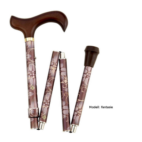 Die Deluxe-Schlank-Faltstöcke, für die elegante Frau, bestechen durch Ihre edle Optik, hohe Stabilität und die leichte Handhabung. Sie werden nicht wie normale Faltstöcke über die Rohrenden zusammengesteckt, sondern nahezu unsichtbar über spezielle Verbindungsteile verbunden. 4 teiliger Faltstock 2 verschiedene Variationen erhältlich Derbygriff aus Hartholz Stock aus Aluminium Maße: verstellbar 76 – 86 cm Durchmesser 19 16 mm Gewicht ca. 290 g geeignet für Personen bis ca 100 kg Modelle: “Fantasie” – Ornament-Dekor, beige silber, Satin-Finish “Spitzenklasse” – silber mit Dekor aus echter Spitze Lieferumfang: 1 Deluxe-Schlank-Faltstock im gewählten Modell Gummipuffer