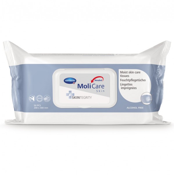 MoliCare Skin Reinigungsprodukte können ohne Wasser angewendet werden. Dadurch kann der natürliche Säureschutzmantel der Haut erhalten bleiben und eine Schwellung der Hautzellen kann vermieden werden.Hierbei handelt es sich um die MoliCare Skin Feuchtpflegetücher. Sie sind der Nachfolger der Menalind professional clean Feuchtpflegetücher.Tücher aus Spunlace-Vlies, getränkt mit einer pflegenden Reinigungslotion ohne Polyethylenglycol (PEG)Hautneutraler ph-Wert von 5,5Lieferumfang:1×50 Stück Hartmann MoliCare Skin Feuchtpflegetücher