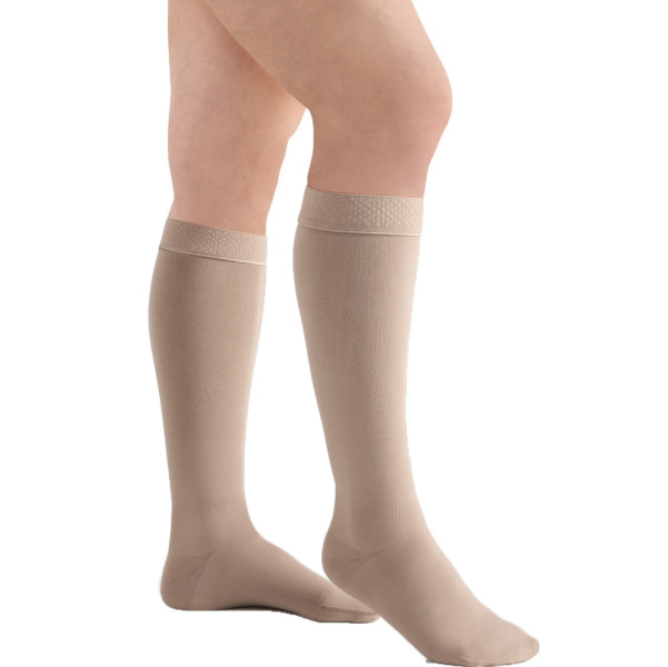Die Juzo Move Kompressionsstrümpfe haben eine einzigartige Strickart, mit der sie sich mühelos über den Fuß und das Bein gleiten lassen. Das An- und Ausziehen ist somit einfach ohne Hilfsmittel möglich. Der Mikrofaseranteil sorgt für ein angenehmes Tragegefühl und ausgleichendes Hautklima. Die Strümpfe haben zudem eine Funktionszone im Ristbereich, die ein Einschneiden auch in einer 90 Grad Fußhaltung minimiert.Strapazierfähig und höchst komfortabel Hoher Arbeitsdruck (widerstandsfähig bei hoher Belastung, wie Laufen)Sehr kurzzügig (dehnbar)Größere Ferse für eine leichtere HandhabungSpezielle Gestrickbindung am VorfußbereichGeschlossener FußMit Noppenhaftrand 3,5 cm:Silikonnoppen für gute AdhäsionVerhindert RutschenLuft kann gut zirkulierenCCL2:23 32 mmHgKurze Länge:34 – 39 cmMaterial:75% Polyamid25% ElasthanAnleitung