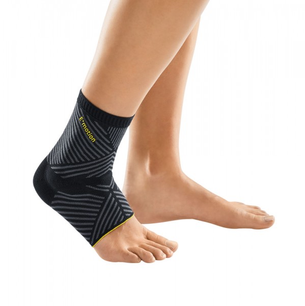 Bei der Levamed® E⁺motion® handelt es sich um eine sportliche Sprunggelenkbandage mit einer integrierten Silikon-Quarz-Pelotte mit 3D-Profil.Weicher AbschlussrandInklusive Anziehhilfe für leichtes AnlegenReduktion von Schwellungen durch kompressives Gestrick und neue Silikon-Quarz-Pelotte mit 3D-ProfilPropriozeptive Kompression: Führung und Stabilisierung der GelenkeWeiche und elastische Comfort Zone in besonders sensiblen BeugebereichenClima Fresh Funktion: antibakteriell und hygienischClima Comfort: atmungsaktives GestrickKann im Wasser genutzt werden – danach bitte abspülenDie Bandage kann ganztägig – nach Wohlbefinden – getragen werden. In Ruhephasen sollte sie jedoch abgelegt werden.Indikationen:Distorsionen, PrellungenSchwellungen und Gelenkergüsse (Arthrose Arthritis)Reizzustände (chronisch, postoperativ, posttraumatisch)Leichte InstabilitätenMaterial:Polyamid, Polyester, ElastanGröße (Fesselumfang):17 – 20 cm = Größe 120 – 22 cm = Größe 222 – 24 cm = Größe 324 – 26 cm = Größe 426 – 28 cm = Größe 5rechts und links gleichFarbe:schwarzLieferumfang:1 Stück Medi Levamed® E⁺motion® Sprunggelenkbandage in schwarz und gewählter Größe