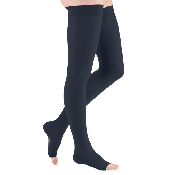 Die mediven plus Schenkelstrümpfe sind optimal für den Alltag für Sie und Ihn geeignet.Plus-Ferse mit Y-Form: leichtes Anziehen, sicherer Sitz und freies Gefühl im SpannbereichGerippte Sohlenverstärkung sichert zuverlässige HaltbarkeitHohe StrapazierfähigkeitBlickdichte OptikAntibakterielle Wirkung am ganzen Bein durch Clima FreshSehr gute HautverträglichkeitKompressionsklasse II: Kompression in mmHg: 23,0 – 32,0, Kompression in kPa: 3,10 – 4,30Normaler Abschluss, ohne HaftbandIndikationen:Nach Varizenverödung OP, sowie Schwangerschaftsvarikosis bei leichter bis schwerer ÖdemneigungEntzündliche Venenerkrankungen (oberfl ächliche Thrombophlebitis, Varikophlebitis) bei leichter bis mittlerer ÖdemneigungThromboseprophylaxe mobiler PatientenPrimäre und sekundäre Varikosis bei leichter bis schwerer ÖdemneigungCVI Stadium I – III bei leichter bis schwerer Ödemneigung bzw. CEAP-Klassifikation C1 bis C5Tiefe Venenthrombose, postthrombotisches Syndrom bei leichter bis schwerer ÖdemneigungMaterial:69% Polyamid31% ElastanPflege-Komfort:Für Waschmaschine und Trockner geeignetFarben:caramelschwarzanthrazitcashmeremarineweißbronzebeigeroseGrößen (Fesselumfang):18-20 cm = I20-22 cm = II22-24 cm = III24-26 cm = IV26-28 cm = V28-30 cm = VI30-32 cm = VIILieferumfang:1 Paar mediven plus CCL2 AG Schenkelstrümpfe offene Fußspitze kurz in gewählter Farbe und Größe