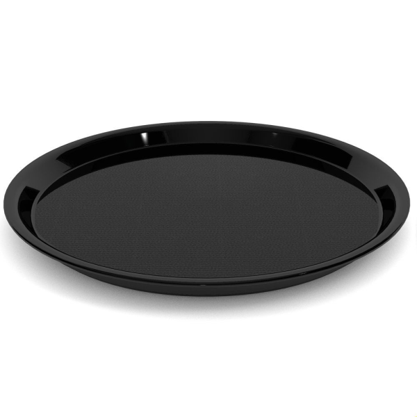 Das runde, stapelfähige Ornamin Serviertablett hat eine rutschende Stellfläche und einen hohen Rand.Besonders guter Halt auch für nasse Gläser und GeschirrMaße:Randhöhe: 25 mmDurchmesser: 37 cmGewicht: 512 gFarbe:schwarzMaterial:Polystyrol, TPE – bruchstabilReinigung:Abspülbar, aber nicht spülmaschinengeeignetLieferumfang:1 Stück ORNAMIN Serviertablett