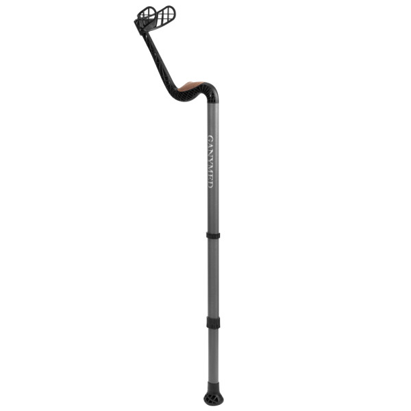 Wer regelmäßig auf Unterarmgehhilfen angewiesen ist, sollte sich für die Ossenberg UAG GANYMED® entscheiden. Denn diese sehen nicht nur optisch anders aus, sondern bieten auch zahlreiche Vorteile gegenüber “klassischen” Krücken:1. Durch die vorgelagerten Rohre im Griff, kann das Gangbild ergonomisch korrekter ausgeführt werden und zu einer besseren Körperhaltung verhelfen. Das schon die Schultern, den Rücken und die Gelenke und optimiert die Gewichtsverteilung.2. Der Gummifuß ist um 180° drehbar und hat eine leichte asymmetrische Form, sodass er bei Bewegung besser abfedert.3. Die Unterarmgehhilfe kann leicht überall aufgehängt werden.GANYMED® Masterpiece:Anatomischer Softgriff KorkFarbe:struktur graustruktur schwarzMaße:Max. Belastbarkeit: 120 kgGewich (Paar): 1200 gHöhe bis Griff (10fach höhenverstellbar): 77 – 99 cmHöhe Griff bis Bügel: 22 cmGrifflänge: 10 cmBügelweite: 9 cmVideo: