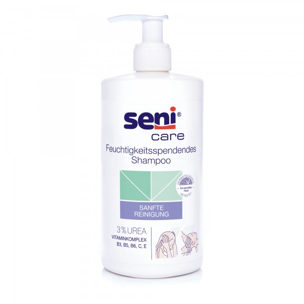 Bettlägerige Menschen sind besonders häufig von trockener, juckender, empfindlicher oder zu Entzündung neigender Kopfhaut betroffen. Das feuchtigkeitsspendende Seni Care Shampoo ist für alle Hauttypen geeignet, es schäumt sanft und lässt sich einfach ausspülen, was besonders bei bettlägerigen Menschen wichtig ist. Angereichert mit 3 % Urea, die die natürliche Schuppung trockener Epidermis unterstützt, die Kopfhaut nährt, pflegt und mit Feuchtigkeit versorgt.Mit LangzeitwirkungFür alle HaartypenVersorgt Kopfhaut optimal mit FeuchtigkeitUnterstützt AbschuppungsprozessSchäumt sanft, erleichtert dadurch Ausspülen bei bettlägerigen PersonenVerbessert HaarstrukturVerleiht Haar gesundes AussehenAnwendung:Auf das nasse Haar und die Kopfhaut auftragen und sanft einmassieren. Mit warmem Wasser ausspülen und trocknen lassen. Bei Bedarf wiederholen. Für den täglichen Gebrauch geeignet.Zusammensetzung:Aqua, Sodium Laureth Sulfate, Cocamidopropyl Betaine*, Lauryl Glucoside*, Urea, Sodium Chloride, Linum Usitatissimum Seed Extract, Panthenol, Dipropylene Glycol Boswellia Serrata Gum*, Hydroxypropyltrimonium Honey, Parfum, PEG-75 Lanolin, Niacinamide Calcium Pantothenate Sodium Ascorbyl Phosphate Tocopheryl Acetate Pyridoxine HCl Maltodextrin Sodium Starch Octenylsuccinate Silica, Lactic Acid, Disodium Undecylenamido MEA-Sulfosuccinate, Sodium Benzoate, Tetrasodium EDTA, 2-Bromo-2-Nitropropane-1,3-Diol (*pflanzlichen Ursprungs)Inhalt:500 ml (Flasche mit Dosierpumpe)Lieferumfang:1 Flasche Seni Care Shampoo mit 3 % Urea