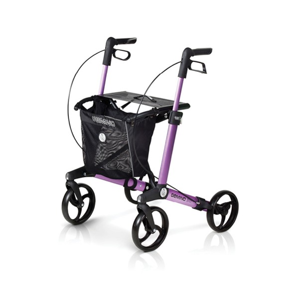 Der Sunrise Medical Gemino 30 S ist die kleinere Version des Gemino 30 und trotzdem extrem stabil und zugleich leicht (nur 6,6 kg)Der Rollator ist für eine Anwendung auf ebenem und festem Untergrund im Innen- und Außenbereich geeignet. Er wurde als Gehhilfe für Personen mit reduzierter Muskelkraft, reduzierter Beweglichkeit sowie eingeschränkter Mobilität und Standsicherheit entwickelt.Der Gemino lässt sich schnell und einfach an die individuellen Bedürfnisse anpassen. Durch den cleveren Klappmechanismus steht der Rollator auch im zusammengeklappten Zustand und lässt sich einfach transportieren. Zum Zusammenfalten muss man einfach nur an der Sitzschlaufe nach oben ziehen. Außerdem ist diese Gehhilfe mit leichtgängigen Bremsen und Rädern ausgestattet um eine optimale Sicherheit zu gewähren.Für den Einkauf befindet sich außerdem ein Netz am Rollator. Dieses kann bei Bedarf sogar abgenommen werden. Die integrierte Ankipphilfe erleichtert das Überwinden von Bordsteinen und kleineren Absätzen.Technische Daten: Gesamtlänge: 68 cmGesamtbreite: 55 cmSchiebegriffhöhe vom Boden: 65-77 cmBreite zwischen den Schiebegriffen: 42 cmSitzhöhe: 48 cmHöhe gefaltet: 69 cmLänge gefaltet: 68 cmBreite gefaltet: 23 cmGesamtgewicht: 6,6 kgZul. Nutzergewicht: 125 kgZul. Belastung des Netzes: 5 kgFarbe:pinkDie empfohlene Körpergröße des Nutzers liegt bei 125 – 165 cm. Der Rollator ist bei Anlieferung bereits vollständig montiert. Alles was Sie tun müssen ist:Falten Sie den Rollator auseinanderStellen Sie die Schiebegriffe auf die richtige Höhe einVideo: