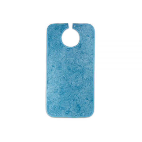 Die Essschürze aus Polyester in batik blau schützt die Kleidung durch eine feuchtigkeitsundurchlässige Beschichtung. Das Polyester kann bei 65°C in der Waschmaschine gewaschen werden. Damit die Schürze nicht vom Patienten runterrutscht befinden sich Druckknöpfe zum Verschließen der Schürze im Nacken. Somit kann man die Halsweite gut regulieren. Innenliegende Nässesperrschicht Leicht saugend Material: Polyester Farbe: batik blau Pflege: Waschbar bis 65°C Bügeln bei niedriger Temperatur Chlorbleiche nicht möglich Trocknen im Trockner mit niedriger Temperatur Größe: 90 x 46 cm