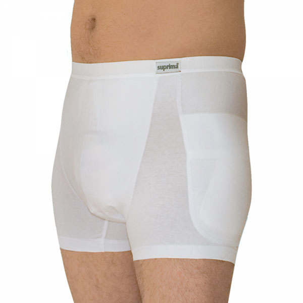 Hüftprotektor Slip “bodyguard” für Herren ohne ProtektorenDas Risiko sich bei einem Sturz eine Oberschenkelhalsfraktur zuzuziehen, wächst mit fortgeschrittenem Alter überproportional, nicht zuletzt weil der Knochenabbau (Osteoporose) eine Krankheit ist, von der überwiegend ältere Menschen betroffen sind. Sturzgefährdeten Personen wird daher empfohlen, einen Slip mit Hüftprotektoren zur Verminderung von Sturzverletzungen zu tragen.Baumwollslip mit Lycrarechts und links je eine Tasche zur Aufnahme der ProtektorenWäscheschutz aus Polyurethan (PU) zur Verwendung von Einlagen bei InkontinenzHose wird ohne der herausnehmbaren Protektoren geliefertGrößen:S: entspricht Herrengröße 4M: entspricht Herrengröße 5L: entspricht Herrengröße 6 7XL: entspricht Herrengröße 8Material:93% Baumwolle7% ElasthanWäscheschutz: PUFarbe:weißPassende Protektoren:Suprima WeichschaumprotektorenSuprima Hüftprotektor StandardWaschempfehlung:Waschen bei 60° (ohne Protektoren)Bügeln bei niedriger Temperatur möglichTrocknen mit niedriger TemperaturChlorbleiche nicht möglich