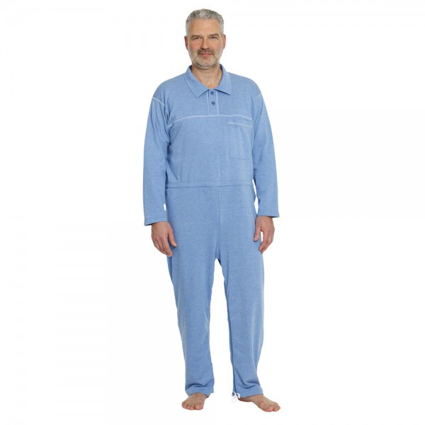 Der Pflegeoverall für Damen und Herren ist mit einem Polokragen und einer Knopfleiste ausgestattet. Leicht über den Kopf zu ziehen Keine Druckstellen am Rücken Teilbarer Reißverschluss am Bein Austausch von Inkontinenzmaterial ohne Entkleiden des Patienten – spart Pflegezeit Einfache Kontrolle und Wechsel von Kompressionsstrümpfen oder Verbänden Sicherung am Beinreißverschluss erschwert dem Patienten das selbstständige Ausziehen Material: 65% Baumwolle 35% Polyester Pflege: Waschbar bis 60°C Bügeln bei niedriger Temperatur erlaubt Trocknen im Trockner bei niedriger Temperatur möglich Nicht Chlorbleichen Keine chemische Reinigung Größen: S: für Sie: 36 38 | für Ihn: 44 M: für Sie: 40 42 | für Ihn: 46 48 L: für Sie: 44 46 | für Ihn: 50 52 XL: für Sie: 48 50 52 | für Ihn: 54 56 Farben: Siehe Auswahlmenü