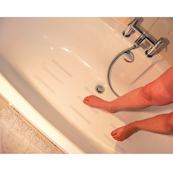In der Badewanne und Dusche kann man leicht rutschen, sodass es zu Stürzen kommen kann. Vermeiden lässt sich dies mit den Tenura Sicherheitsstreifen. Diese können beliebig in der Badewanne, Dusche oder auf Fliesen im Badezimmer angebracht werden. Die selbsthaftenden Streifen lassen sich in beliebiger Position festkleben. Ihre rutschfeste Oberfläche sorgt für Standsicherheit.Vorrangig zur dauerhaften Nutzung gedachtAblösen mit Spülmittel und Wasser, Klebstoffablöser oder anderem Werkzeug möglich Maße: 30 Streifen, je ca. 20 cm Breite je Streifen: ca. 2 cm Farbe: transparent weiß Lieferumfang: 1×30 Stück Tenura Badsicherheitsstreifen