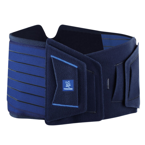 Die Thuasne Lombacross Activity ist eine Lendenwirbelsäulen-Stabilisierungsorthese zur gezielten Unterstützung bei Rückenschmerzen im Lendenbereich. Die „M-förmige“ Rückenplatte mit vier biegsamen Metallstreben passt sich der Körperform flexibel an, sodass der intraabdominale Druck erhöht und die Belastung der Bandscheiben reduziert werden kann.Ideal für aktive PersonenMit überlappenden Doppelgurten für gleichmäßige, individuell anpassbare KompressionAnatomisches Design und asymmetrisch geformte BauchplattenAtmungsaktives Combitex-GewebePraktische HandschlaufenIndikationen:Gewöhnliche, unspezifische Lumbalgie (im akuten, subakuten und chronischen Stadium)Vorbeugung von wiederkehrenden Lumbalgien in Verbindung mit einer Wiederaufnahme der Tätigkeit oder einer therapeutischen AngabeEnger LumbalkanalStabilität der WirbelsäuleKontraindikationen:Nicht verwenden bei bekannter Allergie gegen einen der der BestandteileNicht bei schwangeren Frauen anwendenNicht anwenden bei HiatushernieNicht anwenden bei Knochenkrebs mit WirbelsäulenmetastasenNicht anwenden bei Kreislauf-, Lungen- oder Herz-Kreislaufproblemen, wenn eine Erhöhung des arteriellen Blutdrucks nicht empfohlen wirdMaterial:Textile Bestandteile: Polyamid – Polyester – Elastan – Polyurethan.Nichttextile Bestandteile: gebürsteter gehärteter Stahl – Polyoxymethylen – Polypropylen – Polyethylen.Farbe:schwarz blauRückenhöhe:26 cmGröße (Taillenumfang):60 – 80 cm = 175 – 95 cm = 290 – 110 cm = 3105 – 125 cm = 4120 – 140 cm = 5Lieferumfang:1 Stück Thuasne Lombacross Activity LWS-Stabilisierungsorthese in gewählter Größe