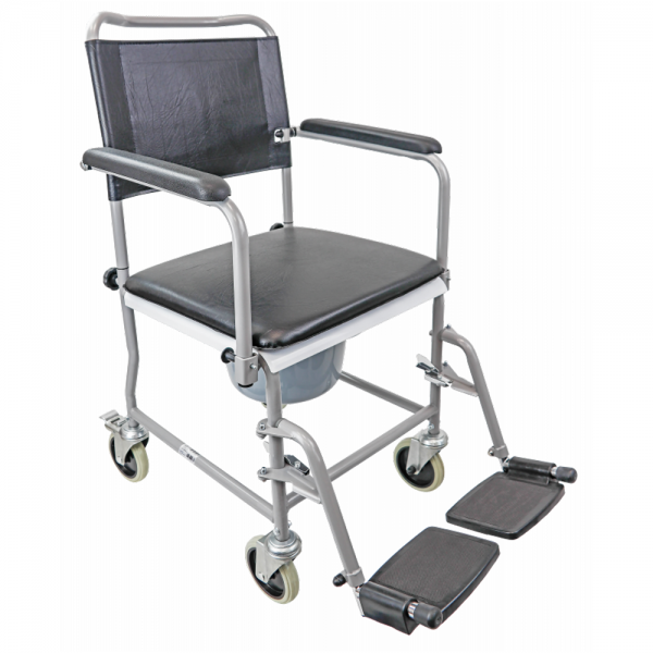 Fahrbarer Toilettenstuhl von Trendmobil mit extra stabilem Rahmen. Inklusive Eimer und Sitzpolster.Abschwenkbare ArmlehnenAbnehmbare BeinstützenStahlrahmen (Pulverbeschichtet)Gebremste Rollen hintenRostfreiTechnische Daten:Tiefe 88 cmBreite 55 cmHöhe 97 cmSitztiefe 41 cmSitzbreite 44 cmSitzhöhe 50 cmRückenhöhe 48 cmGewicht 14 kgBelastbarkeit 120 kgMaße Öffnung 23 x 22 cmFarbe AnthrazitÜberfahrhöhe 41 cmLieferumfang:1x TSF Toilettenstuhl inklusive Eimer und Sitzpolster