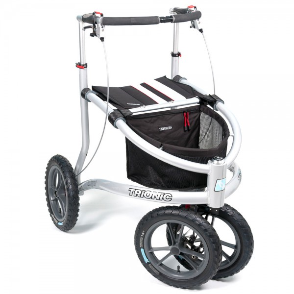Die neuen Trionic Veloped Gelände Rollatoren sind mit 12″ und 14″ Rädern erhältlich. Umso größer das Rad, um so wendiger ist der Rollator im Außenbereich. Hierbei handelt es sich um den Veloped Tour mit 14″ in Größe L (für Körpergröße 185-210 cm). Der Rollator ist mit seinem geräumigen Korb und seiner vergrößerten Sitzfläche ideal für Spaziergänge, Einkäufe und den Alltag geeignet. Er hat extra reflektierende Silberstreifen und rote Linien, die modern aussehen und Sicherheit im Dunkeln bieten. Neue Eigenschaften:Rahmen aus hydrogeformten, geschweissten 6061 Alu-RohrenTrionic X-Country Leichtgewichtsreifen: grobes Muster (ideal für’s Gelände), gute Federung, sehr leicht, T-Guard Pannenschutz und reflektierende Logos100% Edelstahl (inkl. Kugellager und Steckachsen)Neue CST Schläuche, die den Druck deutlich länger behaltenNeue Radaufhängung des Kletterrades, jetzt mit allen Hauptteilen aus hochwertigem 6061-T6 Aluminium Bewährte Eigenschaften: Luftbereifung und Federung für Komfort und Entlastung für die Gelenke All-Terrain-Nabenbremsen: optimale Bremsleistung in jedem Gelände und bei jedem Wetter Trionic Bremshebel aus Voll-Aluminium mit Parkbremse Abnehmbare Räder mit Schnellverschluss 2-stufiger teleskopischer Falt-Mechanismus Trionic Syncro Lenkung: synchronisierte Lenkfunktion verhindert flatternde oder verdrehte Schwenkräder Trionic Climbing Wheel: Hindernisse bis 13 cm leicht mit dem Kletterrad überwinden und Einstellbarkeit an Gelände- oder Stadtbetrieb 3-Rad-Design für dauerhaften Bodenkontakt im Gelände Voll-Aluminium-Design aus 6061-T6 Aluminium: leichtes Gewicht und große Steifigkeit U-förmige, höhenverstellbare Haltestange sorgt für ergonomisch korrekte Körperhaltung und kann beim Sitzen als Rückenlehne genutzt werden Winkelverstellbare Handgriffe mit Kraton-Gummi beschichtet Wasserabstoßendes und austauschbares Textil-Zubehör aus 600D Polyester Insgesamt fünf Reflektoren für zusätzliche Sicherheit nachts Maße: Griffhöhe: 84 – 104 cm Empfohlene Körpergröße: 185 – 210 cm Länge: 107 cm Breite: 79 cm Griffbreite: 48 cm Sitzhöhe: 65 cm Sitzbreite: 44 cm Sitztiefe: 30 cm Radgröße: 14″ 36 cm Faltmaß mit Rädern (H x L x B): 84 x 111 x 42 cm Faltmaß ohne Räder (H x L x B): 68 x 84 x 42 cm Gewicht Gewicht ohne Räder: 13,9 kg 7,9 kg Max. Belastbarkeit: 150 kg Farbe: schwarz reflex rot Regenschutz zweifarbig silber schwarz Lieferumfang: 1 Stück Trionic Veloped Tour 14er L Inkl. Korb mit Reißverschlusstasche und Regenschutz, Sitz Korb-Regenschutz