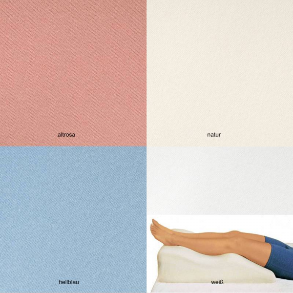 Anschmiegsamer Bezug aus Jersey für: Witschi aufblasbares Reise-Venenkissen Witschi Venenkissen “Kamel” Classic Line Material: 100 % Baumwoll-double-Jersey Farbe: weiß natur altrosa hellblau Größe (passend zu Venenkissen): Mod. A: bis ca. 1,66 m 52 x 68 x 20 cm (B x L x H) Mod. B: ab ca. 1,67 m 52 x 77 x 23 cm (B x L x H) Lieferumfang: 1 BEZUG für Witschi aufblasbares Venenkissen Witschi Venenkissen “Kamel”